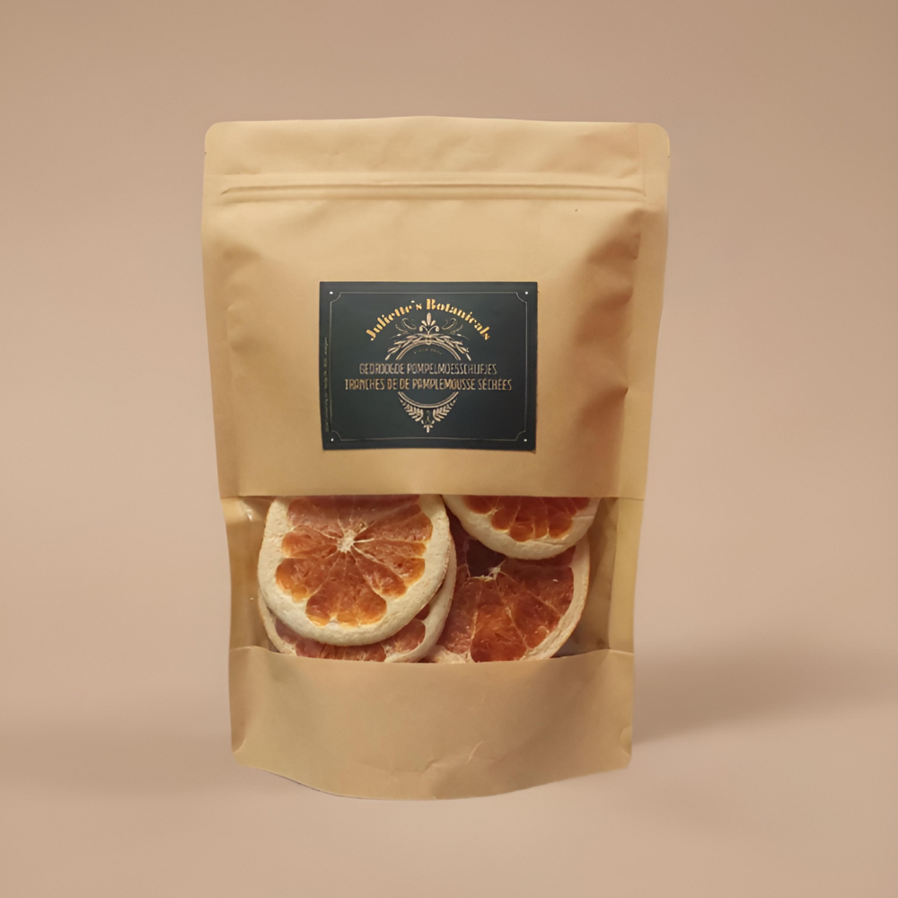 Voeg een exotische en verfrissende twist toe aan je drankjes, gerechten of decoraties met onze gedroogde pompelmoesschijfjes. Handgesneden en langzaam gedroogd om de levendige kleur, aromatische geur en karakteristieke bitterzoete smaak van verse pompelmoes te behouden.